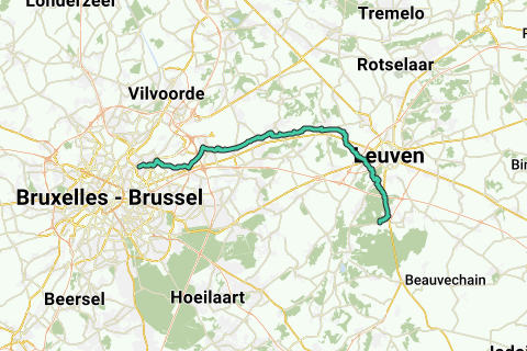 Woon-werk fietsroute van Vaalbeek over Winksele naar Aeropolis (Schaarbeek).