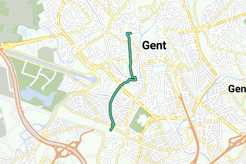 Verlaat het station via de hoofduitgang en steek het plein over naar de Koning Albertlaan. Volg deze weg tot aan het grote kruispunt met de Godshuizenlaan. Steek dit kruispunt over naar het Bijlokehof. Wandel tot aan het water en sla er rechtsaf. Volg de Coupure en wandel de brug op je linkerzijde over. Sla daarna linksaf en meteen weer rechtsaf naar de Iepenstraat. Vervolg deze naar de Oude Houtlei en vervolgens de Ramen. Aan de T-splitsing met de Burgstraat, sla je rechtsaf. Je komt zo aan het Rustpunt.