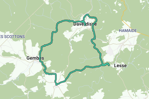 Route doorheen drie riviervalleien rondom Daverdisse. De route volgt vooral bospaden en enkele (semi)verharde wegen. De rivieren worden telkens overgestoken langs voetgangersbruggen.