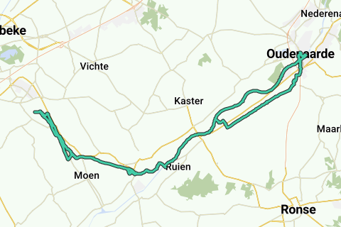 Vanuit Zwevegem via Koppenberg en Oudenaarde terug naar Zwevegem.