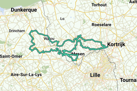 Vanuit Wevelgem > Ieper > Poperinge > Kemmelberg > Ploegsteert > Ieper > Wevelgem