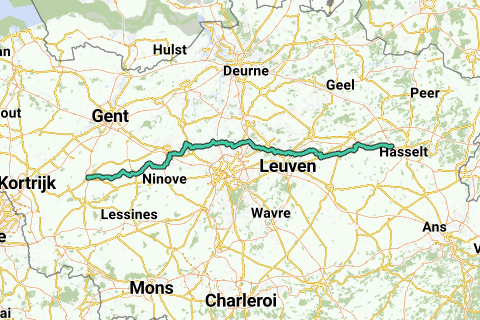 Fietsroute van Tuilt/Hasselt naar Oudenaarde