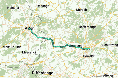 Van station Arlon naar Luxemburg langs mooie wegen.