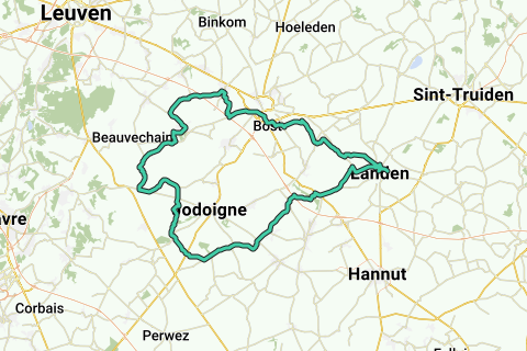 Vertrek Landen Argus, Linsmeau, Noduwez, Enines, Huppaye, Jauchelette, Dongelberg, Lathuy, Mélin, Beauvechain, Meldert, Willebringen, Kumtich, Oorbeek, Tienen, Bost, Hakendover, Ezemaal, Landen.