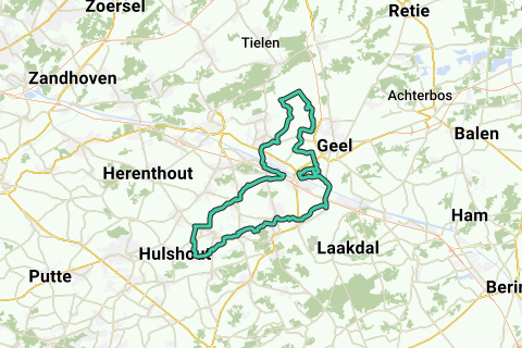 Mooie rustige lusvormige route vertrekkend van Hulshout (Kovera) richting noord naar het natuurgebied 'De Zegge' (noordwest van Geel).