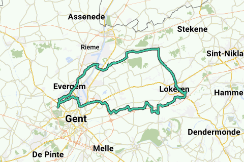 Mariakerke - Mendonk - Wachtebeke - Moervaart - fietspad Daknam - Durmevallei - Lokeren - Berlare - Beervelde - Vissershoek - Mariakerke