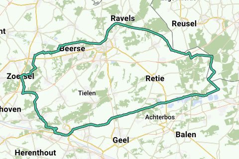 Zoersel over Turnhout naar Lommel en over Geel terug