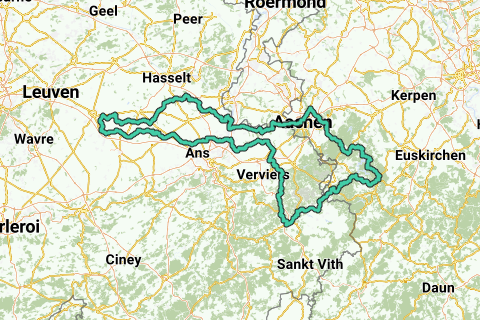 Route gemaakt van hakendover naar aachen en erug binnendoor