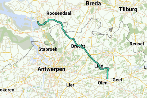 Achtdaagse rit in lijn van Bergen op Zoom naar de Mont Ventoux. Traject 1. Deel 1 van dag 1. (Tevens eerste rit van Bergen op Zoom naar de Grand Ballon in de Vogezen.)