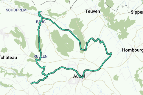 Van jeugdherberg De Veurs via Ravel 38 naar abdij Val Dieu en dan (recht) terug.