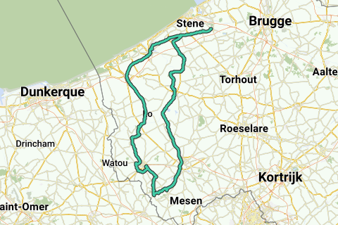 Lokeer-Ieper-Knokke brug-Diksmuide-Nieuwe brug-Slijps-Oudenburg- terug via Veurne-alveringem-fintele -Poperinge-loker