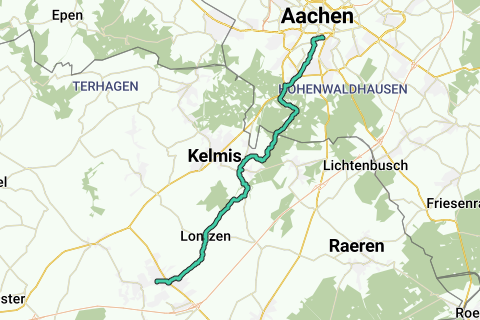 Fietsroute van Welkenraedt-Station naar Aachen Hauptbahnhof