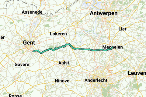 Van de carpool parking in Merelbeke naar de Grote Markt van Mechelen. Via Dendermonde.