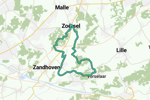 Via Oostmallebaan tussen velden en af en toe bossen. vlakke rit.