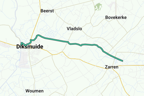 Je kan starten in Diksmuide punt A waar je perfect je kano te water kan laten, je vaart via de Ijzer de Handzammevaart op en het eerste deel is dwars door Diksmuide wat wel een speciale en leuke sfeer met zich meebrengt. Je kan de tocht zo lang maken als je zelf wilt want aan punt B kan je niet verder varen, daar is het afgedamd en wordt het een beek en veel smaller. Als je een goed gevulde dag wilt kan je van punt A naar punt B varen en terug en dan heb je ongeveer een dikke 19 km gevaren, op stilstaand water wel te verstaan. Na het eerste deel tussen de muren in Diksmuide vaar je tussen de Vlaamse velden.