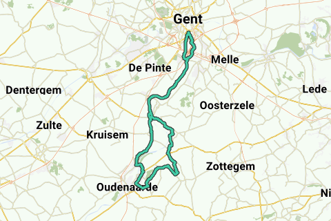 65km vanuit Gent langs de Schelde richting Oudenaarde en terug naar Gent via Dikkelvenne, Gavere, Zevergem en Zwijnaarde.