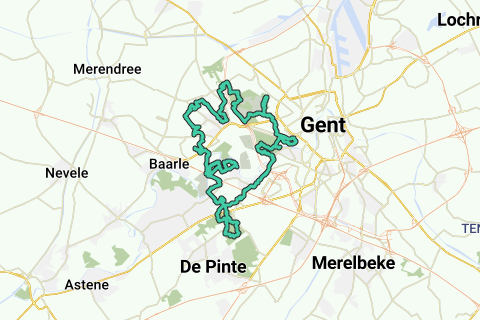 Start en finish in Afsnee, met onderweg Parkbos, Blaarmeersen, Bourgoyen en Drongen.