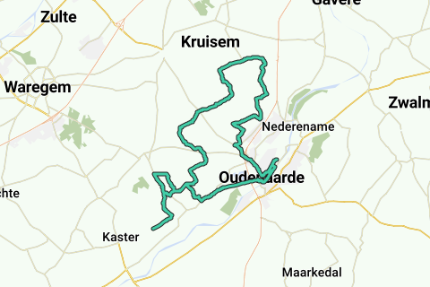 Sporthal Rode Los - Markt Oudenaarde - Mullem - Korte Ast - Lede - Ooike - Moregem - Bergstraat - Elsegem - (op parcours RvVL) - Petegem - Passage Aankomstlijn - Markt - Sporthal Rode Los