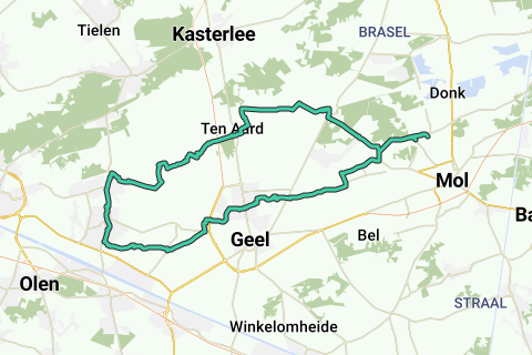 Van: Pastoor Moorkensstraat 2400 Mol, België -- St.jozef Olen -- Naar: Blokstraat 2400 Mol, België Routering: Recreatief fietsen - mooiste