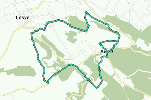 De eerste 3 kilometer gaan over het algemeen omhoog in de richting van Bois-de-Villers. De rondgang slaat linksaf en stijgt richting Lesve. Bij het Château volgt een brede en aangename weg die door de velden naar beneden leidt. Vervolgens komt er een dalend stuk asfaltweg dat u terug naar het dorp Arbre brengt.