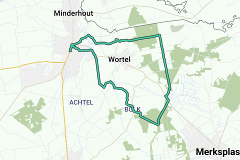 Deze route start in de buurt van de kerk en doet daarna de volgende wandelknooppunten aan: 86 > 84 > 82 > 83 > 91 > 92 > 96 > 31 > 41 > 75 > 74 > 76 > 25 > 22 > 15 > 14 > 1 > 2 > 10 > 9 > 8 > 29 > 28 > 55 > 53 > 52 > 50 > 81 > 84 > 86 > 86.