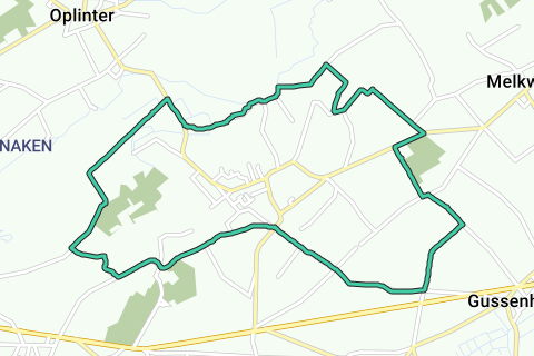 Deze route start in de buurt van de kerk en doet daarna de volgende wandelknooppunten aan: 117 > 118 > 119 > 142 > 215 > 214 > 212 > 209 > 208 > 207 > 121 > 122 > 123 > 124 > 125 > 116 > 117.