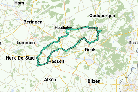 Van Stevoort via Genk, rand Oudsbergen, Houthalen-Helchteren en Zonhoven terug naar Stevoort.