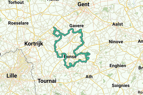 Route van 150km door de vlaamse Ardennen.