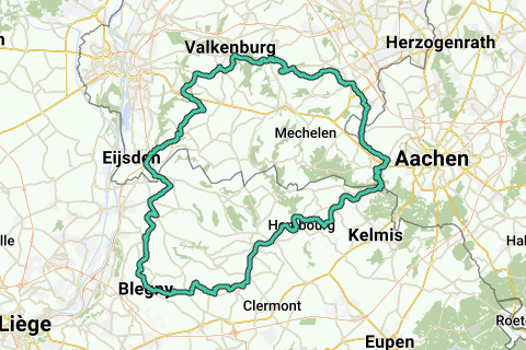 Mooie route voor de racefiets vanuit Oud Valkenburg. Eerst naar Blegny in de Voerstreek, dan richting het Drielandenpunt bij Vaals en terug naar Valkenburg. 95 km, 1200 hoogtemeters. Met andere woorden: relatief weinig hoogtemeters op deze afstand!
