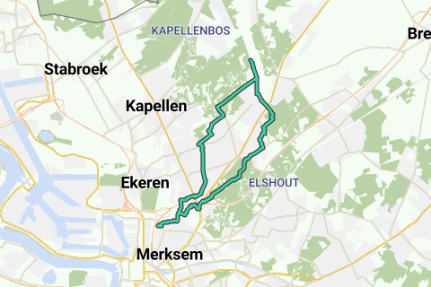 Daarna langs een rustige weg tussen de bomen verder langs Brasschaat, de Kattekesberg terug naar Merksem.