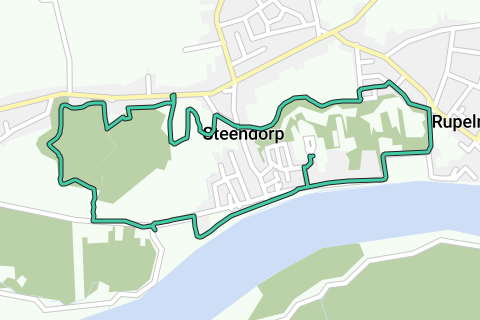 Je vertrekt aan de parking van sporthal "Het Gelaag" te Steendorp, dan LA naar Berkenlaan, RA Lepelstraat, 50 meter verder LA naar Scheldedijk. Scheldedijk blijf je volgen tot juist voorbij de verlaten site van de steenbakkerij, dan LA naar Scouselestraat, volg tot aan huisnr. 52 waar je RA de helling opgaat naar het Fort Van Steendorp. Hier volg je de wegwijzers van Steendorp Wandelroute, voorbij het Fort, langs de Finse looppiste, naar beneden rond 1 kleiput, en daarna terug omhoog tot de Kerkhofstraat. RA richting Gelaagstraat, die je dwarst ter hoogte van het Kapelletje, waar je RD in de Oeverdam, voetweg 10 neemt. Je volgt nog steeds Steendorp wandelroute, aan het einde van voetweg 10 sla je RA, in de Florimond van Goeylaan. Daar zie je RD in een wegje, terug een bordje van Steendorp wandelroute. Dat volg je tot in de Aloïs Roelandtslaan en verder RD in de Kloosterstraat. Ter hoogte van de inkomboog van domein Scaldiana sla je RA, in de Gelaagstraat, richting “Scheldewerf Rupelmonde NV". Voor de terreinen van de Scheldewerf sla je RA en kom je opnieuw in de Lepelstraat. Je slaat dan LA op de Scheldedijk en volgt die tot je ter hoogte komt van de Berkenlaan, waar je de Scheldedijk verlaat. Sla dan de Berkenlaan in, dan RA naar de Sparrenlaan tot aan het vertrekpunt van de wandeling, parking van Sporthal "Het Gelaag". Niet toegankelijk voor rol- en kinderwagens.