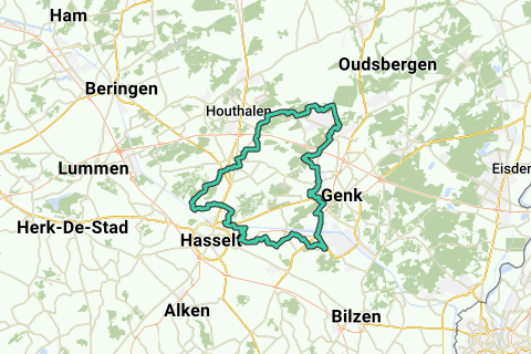 Van: Middenkruis, 3600 Genk Boxbergheide, België naar Nieuwe Kempen- Houthalen- Zonhoven- Kuringen Heide- Godsheide- UHasselt- Dorpheide- Caetsbeek- Middenkruis, 3600 Genk Boxbergheide, België.