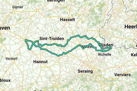 Via Landen - Waremme - Tongeren naar de maas in Wezet. En terug via Riemst - Borgloon