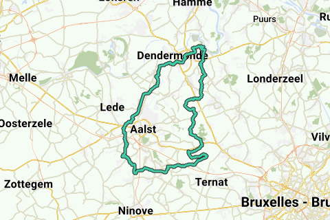 Route tot in Denderleeuw. Tussen de meeste beklimmingen, maar heel veel vals plat. Weinig echte vlakke stukken. Op het einde komen er wel 2 echte beklimmingen bij.
