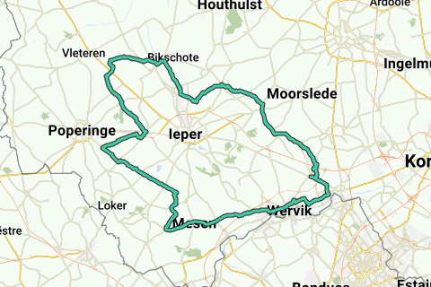 Golvend-via Zonnebeke-Reninge-Vlamertinge-Poperinge-Dikkebus-Wulvergem-Mesenberg.