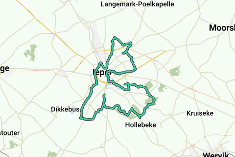 De route vertrekt en eindigt aan de Menenpoort (knooppunt 93).