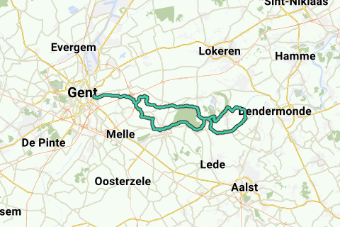 Route: Schelde - Destelbergen - Laarne - Schelde - splitsing voor Schoonaarde - Schelde tot veer Appels - binnendoor tot Berlare Broek - Schelde tot Uitbergen - binnendoor Kalken - Destelbergen - Schelde