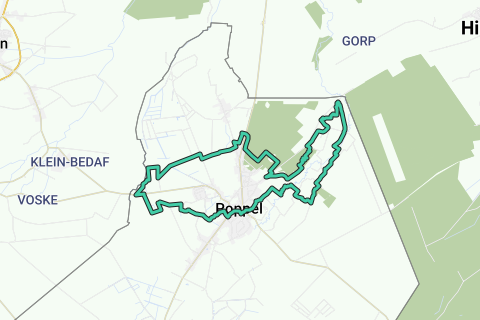 De wandeltocht start aan het voormalig gemeentehuis (1903) van Poppel en loopt over rustige landbouwwegen door landbouw- en bosgebied. Tussen knpt 25 en 26 volgen we de kronkelende AA. Vervolgens gaat het langs afwisselend velden en bospartijen tot aan de kapel van Rovert (1735) gelegen aan de Nederlandse grens. We keren op onze stappen terug en wandelen door de bossen van Molenheide tot aan de andere kant van de gemeente, tot aan de Nederlandse grens aan grenspaal no 843, gelegen in de vallei van de Nieuwe Ley, en onderdeel van het eeuwenoude domein 'De Schrieken'. Juist voor we het eindpunt van de wandeling bereiken hebben we een mooi zicht op de laatgotische Sint-Valentinuskerk (vanaf de 16de eeuw).