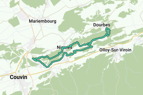Een reliëfrijke en avontuurlijke wandeling van 21 km door de Calestienne of Kalksteenstrook. Het is ook deze strook dat ervoor zorgt dat we kunnen genieten van enkele pittige klimmetjes op een rotsachtige ondergrond. Verken deze strook tussen Dourbes en Couvin, met onderweg de beter gekende Fondry des Chiens in Nismes en de grotten van Neptunus nabij Couvin.