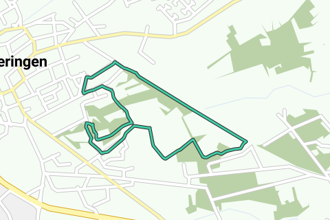 De groene lus (tegenwijzerzin) van de bewegwijzerde looproute in Beringen begint bij de voetbalterreinen van KVK Beringen aan de Hasseltsesteenweg 130. Deze route biedt een serene en vlakke natuurlijke omgeving, ideaal voor een ontspannen wandel- of loopervaring.