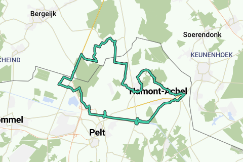 naar knp 568 ( aan hotel Hooghuys naar Li ) verder naar Achel en zo tot Boekel. Naar Neerpelt over Huibrechts terug naar hotel Hooghuys