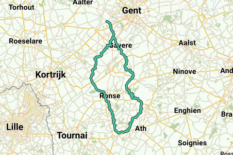 Lus naar het zuiden via Zingem Horebeke Flobecq naar Ath terug via Ronse.