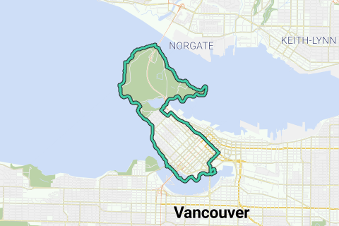 Mooie fietroute in de fiets vriendelijke (binnenstad) van Vancouver die Stanley Park, de False Creek Zeewal, het BC Place Stadion, Coal Harbour, ... bezoekt.