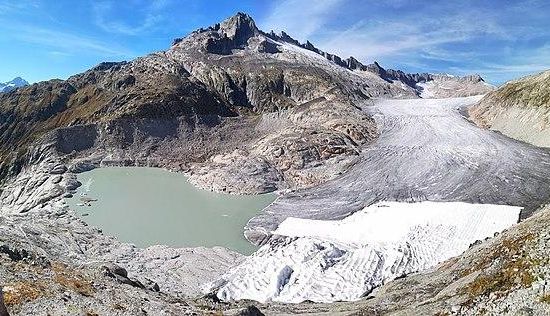 De Rhônegletsjer met kwelbeekjes van koud en warm water in het brongebied van de Rhône behoort continentaal tot de Europese getemperde valleigletsjers. Tot 1984 was de Rhônegletsjer familiebezit; nu behoort hij aan het Zwitserse kanton Wallis. Elk voorjaar opnieuw wordt er in het gletsjerijs een grot uitgegraven die te bezoeken is. Dit gebeurt door de familie Carlen waarbij dit al de vierde generatie is die deze taak op zich neemt. Deskundigen van de Eidgenössische Technische Hochschule Zürich gaan ervan uit dat hij rond het jaar 2100 verdwenen zal zijn.