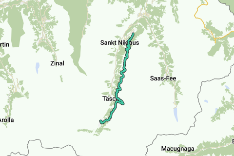 De Europaweg is de belangrijkste etappe van de beroemde Monte Rosa Tour en verbindt het familieresort Grächen met Zermatt. Na de eerste klim van de route over het Geissweg van Gasenried naar de kam, vinden wandelaars het indrukwekkendste uitzichtpunt op de Europaweg. Weisshorn en Matterhorn zijn de rest van de weg zichtbaar. Volg het pad naar de Europahütte, steek bergverschuivingen, alpenweiden en beveiligde delen over rotswanden over. De tweede etappe is zorgvuldig ontworpen en loopt onder de Dom door een lawinehekje, later door een tunnel in de Wildikin. Steek weiden met bloeiende edelweiss over voordat u de brug over de dorpsbeek steekt. Steek de Täschoever over en stijg naar de Täschalpe. Volg het robuuste wandelpad en bereik Sunegga boven Zermatt.