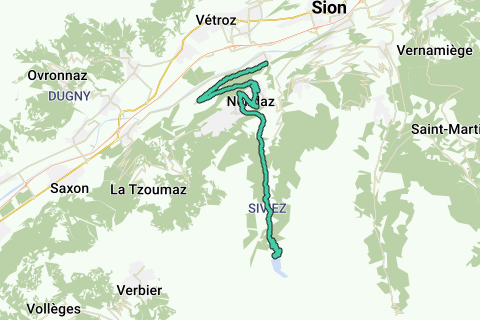 Vanuit Aproz lernt u dit schilderachtige kleine dorpje kennen, waar jaarlijks de nationale koe-gevechtsfinale plaatsvindt, die bekendstaat als "combat de reines", om de koningin van Wallis te bepalen. De start van de klim begint op een grote weg door abrikozenplantages. Het uitzicht opent zich over de tegenoverliggende vallei, bedekt met wijngaarden, en we kunnen het dorp Chamoson bewonderen, de grootste wijngemeente van Zwitserland. Na de doortocht door het bergdorp Nendaz, gaat de weg in de richting van Siviez op een constante klim, die snel hoogte wint. In Siviez ontdekken we de imposante muur van de Cleuson-dam aan het einde van de vallei. Van hieruit leiden de laatste kilometers over een veldweg.
