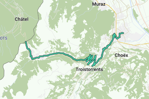 Om bij het startpunt terug te keren, raden we aan de bosweg van Morgins te nemen, die u naar de hoofdweg van het Illiez-dal leidt. Sla rechtsaf en neem de tijd om door de dorpen Val d'Illiez en Champéry te rijden, voordat u afdaalt via de "Route des Rives", die u over de rechteroever van het dal naar Monthey brengt. Een gegarandeerde verandering van sfeer!