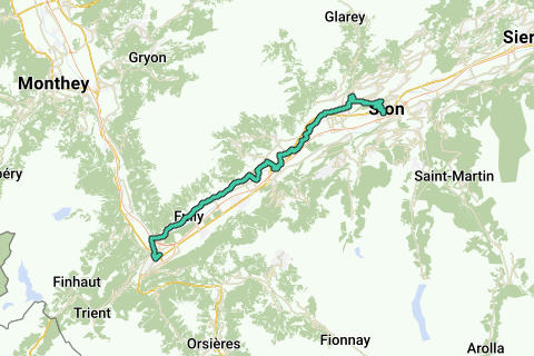 Een energiegeladen op en neer langs een steile, zonovergoten zuidhelling, door verzorgde wijngaarden, kleine wijndorpjes en historische plekken zoals Saillon met de mini-wijngaard van de vervalser Farinet en Chamoson met zijn achtzijdige toren van St-Pierre-de-Clages.