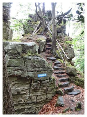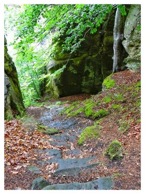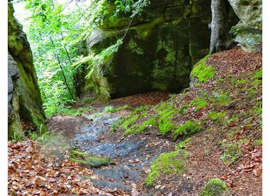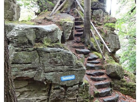 Werk van de duivel of door de natuur gecreëerd? Iedereen die door de bizarre rotsformaties van het Ferschweiler Plateau wandelt, kan zichzelf deze vraag keer op keer stellen, omdat sommige van de kloven en machtige torens van Lias-zandsteen zo onwerkelijk lijken. De donkere kloof met metershoge wanden aan de rand van het plateau boven het Sauertal is een van de vele indrukwekkende overblijfselen van de rotsverschuivingen uit de ijstijd en wordt niet voor niets "Teufelsloch" genoemd.