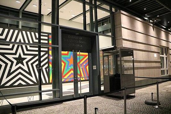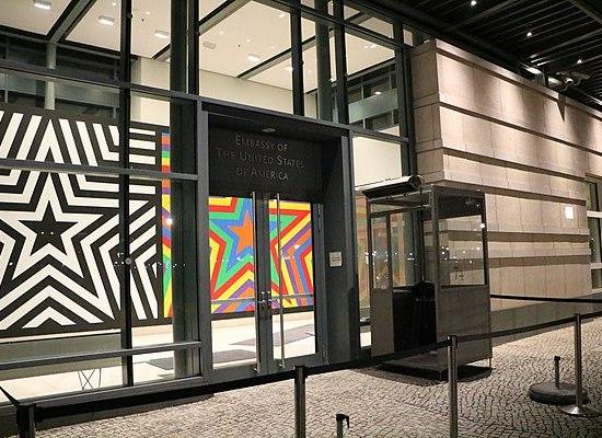 De Amerikaanse ambassade in Berlijn ligt aan het Pariser Platz 2, direct naast de Brandenburger Tor.